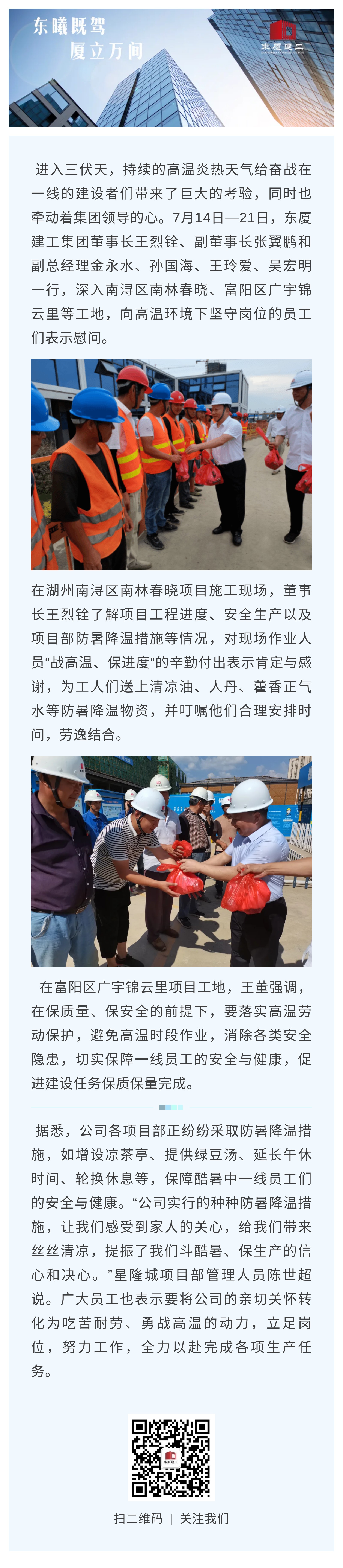 情系一線送清涼 齊心協(xié)力戰(zhàn)三伏|東廈建工開展高溫慰問活動(dòng)