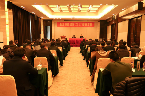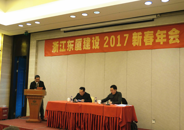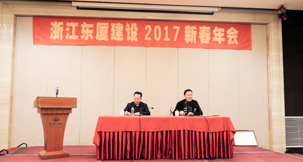 2017年元月9日下午,浙江東廈2017新春年會(huì)在柯巖鑒湖大酒店隆重召開。公司董事長王烈銓,總經(jīng)朱衛(wèi)洋及全體員工、項(xiàng)目經(jīng)理及技術(shù)骨干等100多人參加了會(huì)議。