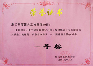| 2017年3月1日,紹興市建筑系統(tǒng)第二十二屆QC活動(dòng)成果發(fā)布會(huì)于紹興市稽山賓館舉行。在眾多發(fā)布的QC小組成果中,我司中銀國(guó)際大廈項(xiàng)目部QC小組成果《探討提高止水后澆帶施工質(zhì)量》榮獲紹興市建筑系統(tǒng)QC成果一等獎(jiǎng),新建北七路二期工程項(xiàng)目部QC小組成果《提高瀝青路面平整度》獲得二等獎(jiǎng)。 近年來(lái),我司積極鼓勵(lì)項(xiàng)目部針對(duì)工程施工過(guò)程中的難點(diǎn)、重點(diǎn)及存在的問(wèn)題進(jìn)行研究、探討,發(fā)揚(yáng)創(chuàng)新精神,大力開(kāi)展QC小組活動(dòng)。本次QC小組成果取得的成績(jī)也正是給予所有的項(xiàng)目部開(kāi)展QC小組活動(dòng)一個(gè)好的例子、榜樣。 百尺竿頭,更進(jìn)一步,借此次QC成果取得優(yōu)異成績(jī)的契機(jī),我司將創(chuàng)造更為濃厚的科技創(chuàng)新氛圍,積極開(kāi)展科技創(chuàng)新活動(dòng),力爭(zhēng)取得更多、更好、更全面的科技成果!