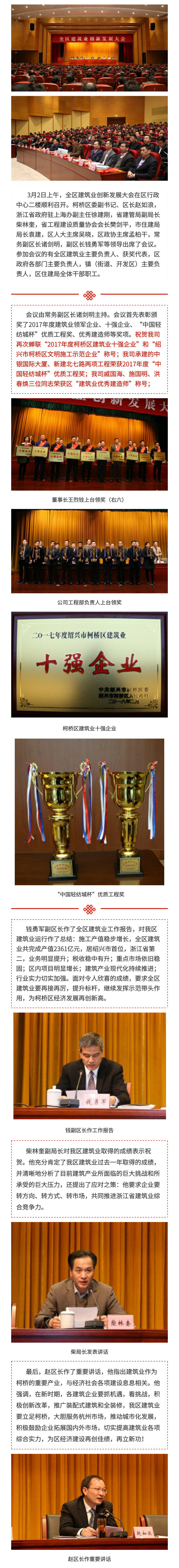 祝賀區(qū)建筑業(yè)創(chuàng)新發(fā)展大會(huì)順利召開,我司蟬聯(lián)“2017年度柯橋區(qū)建筑業(yè)十強(qiáng)企業(yè)”
