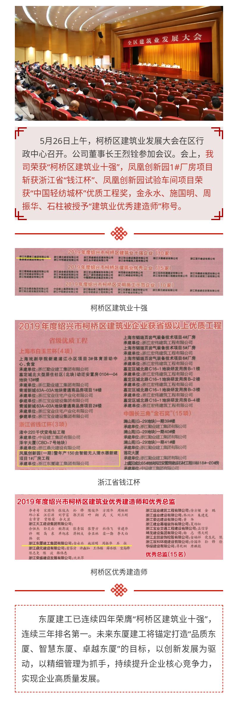 我司榮獲“柯橋區(qū)建筑業(yè)十強企業(yè)”三連冠