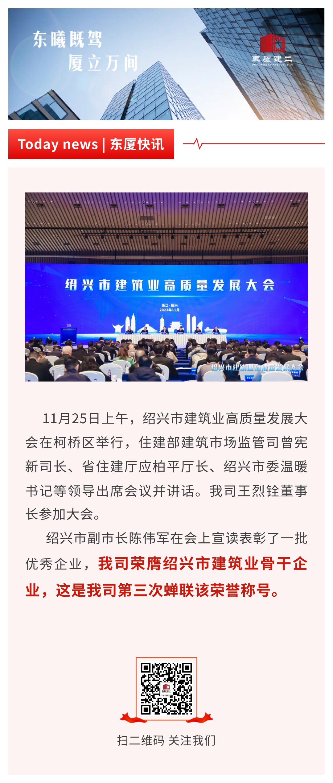 【東廈榮譽】我司榮膺紹興市建筑業(yè)骨干企業(yè)稱號