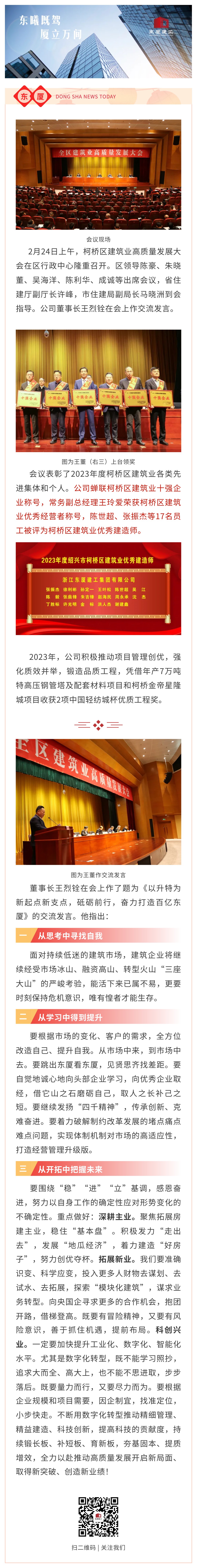 勇毅篤行 長風萬里 | 公司蟬聯(lián)柯橋區(qū)建筑業(yè)十強企業(yè)