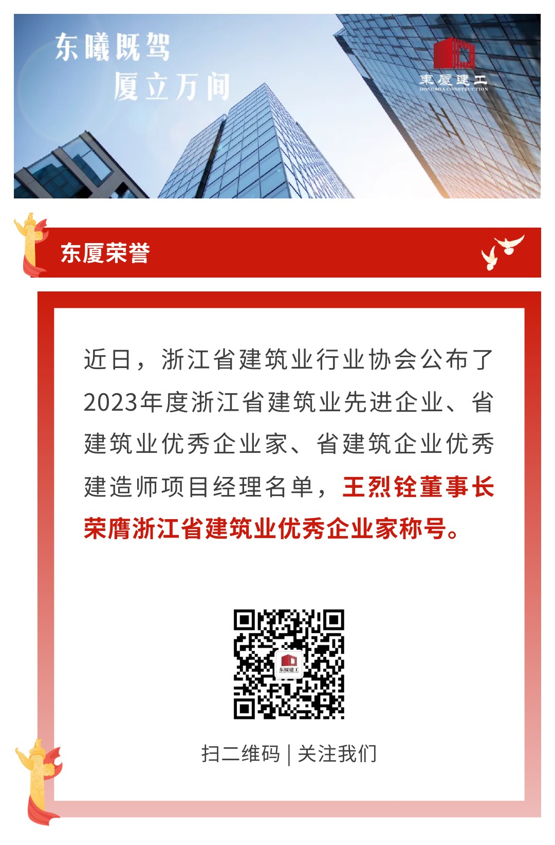 喜訊!王董事長(zhǎng)榮膺浙江省建筑業(yè)優(yōu)秀企業(yè)家稱號(hào)