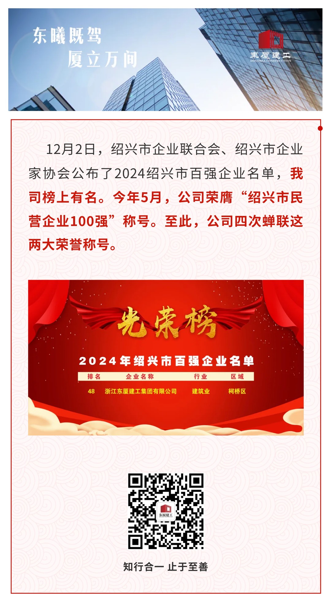 東廈榮譽(yù) | 公司四次蟬聯(lián)2024“紹興市百強(qiáng)企業(yè)”“紹興市民營企業(yè)100強(qiáng)”